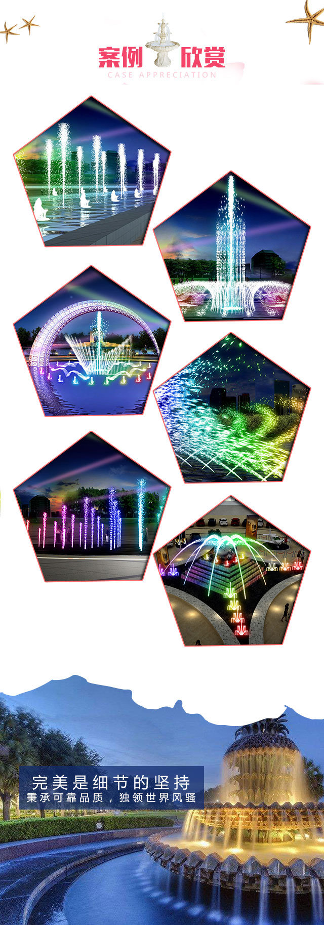 沈陽飛亞水藝園景工程有限公司是主要從事各類水景、綠化工程的設(shè)計(jì)及施工企業(yè)。公司自2006年至今已在國內(nèi)外承建大中型噴泉100余座,多年的設(shè)計(jì)施工為我們積累了豐富經(jīng)驗(yàn)及雄厚的人力物力資源。現(xiàn)已擁有包括設(shè)計(jì)部、工程部、開發(fā)部、經(jīng)營部等6個部門,以及設(shè)備齊全的試驗(yàn)室、噴泉演示室、噴灌及園林機(jī)具展示室,設(shè)備加工車間等基礎(chǔ)配套部門。在人力資源方面擁有專業(yè)從事噴泉研究的技術(shù)人員八十余名,其中高級工程師15名(國內(nèi)有突出貢獻(xiàn)的水射流專家,教授級高工3名)工程師20名,綠化工程師10名,技術(shù)熟練的施工人員50余人,公司已連續(xù)4年產(chǎn)值超千萬,并獲得本地區(qū)先進(jìn)納稅企業(yè)稱號,在企業(yè)獲得發(fā)展壯大同時又取得良好社會效益,使飛亞品牌在國內(nèi)同行業(yè)中一直處在領(lǐng)先地位。在技術(shù)改造同時,向管理要效益也是公司不斷追求的目標(biāo),為了早日使公司管理體系與國際接軌,以適應(yīng)當(dāng)今社會發(fā)展的需要,經(jīng)過2年多努力沈陽飛亞水藝園景工程有限公司于2007年成為國內(nèi)沈陽市政府重合同守信用的噴泉、綠化企業(yè)。2008年本公司榮獲中國水景噴泉委員會甲壹級資質(zhì)、公司總經(jīng)理仲惠娟榮獲水景噴泉委員會常務(wù)委員。