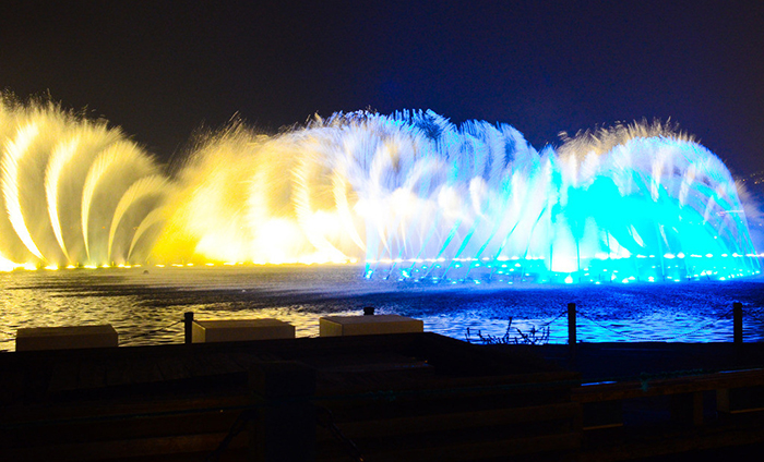 ,燈光、水幕、音樂交織在一起,面前展開了一個(gè)如夢(mèng)似幻的世界.