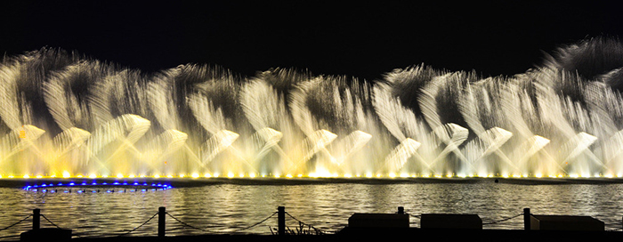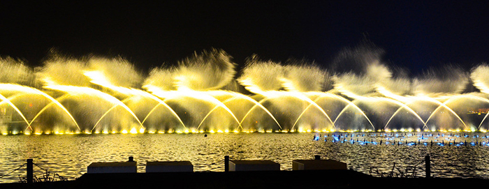 ,所有設(shè)備由計(jì)算機(jī)系統(tǒng)通過網(wǎng)絡(luò)多級(jí)互連控制技術(shù)進(jìn)行控制,綻放出優(yōu)美的線條。音樂聲中,道道水柱從湖中噴起,最高的可達(dá)180米.