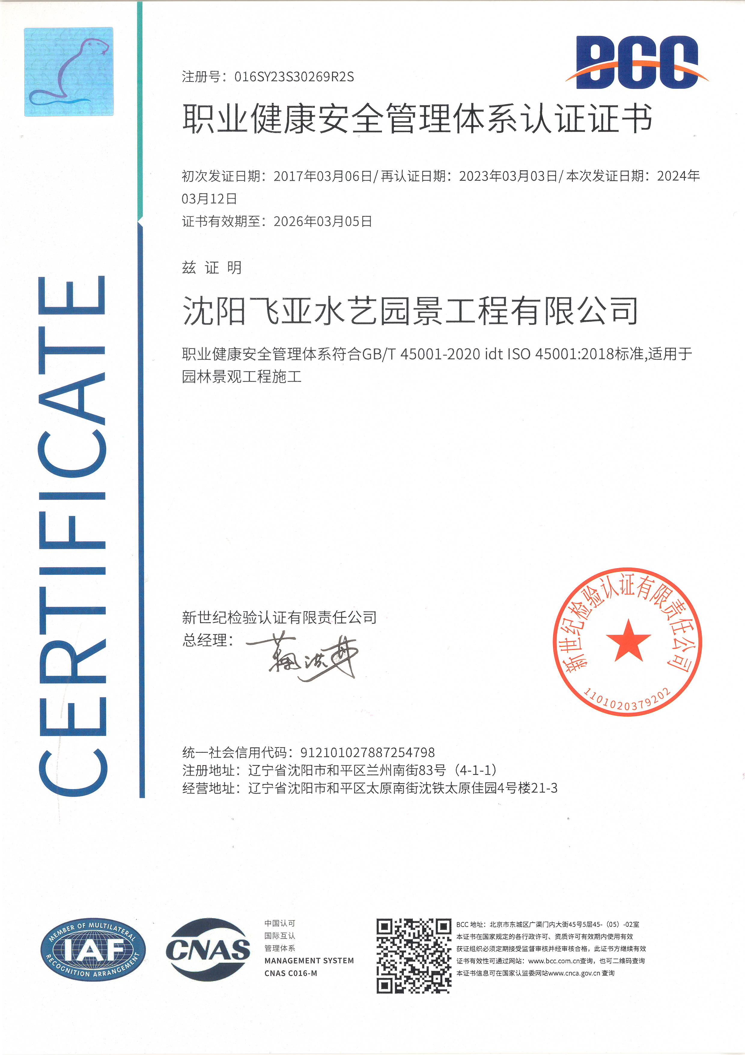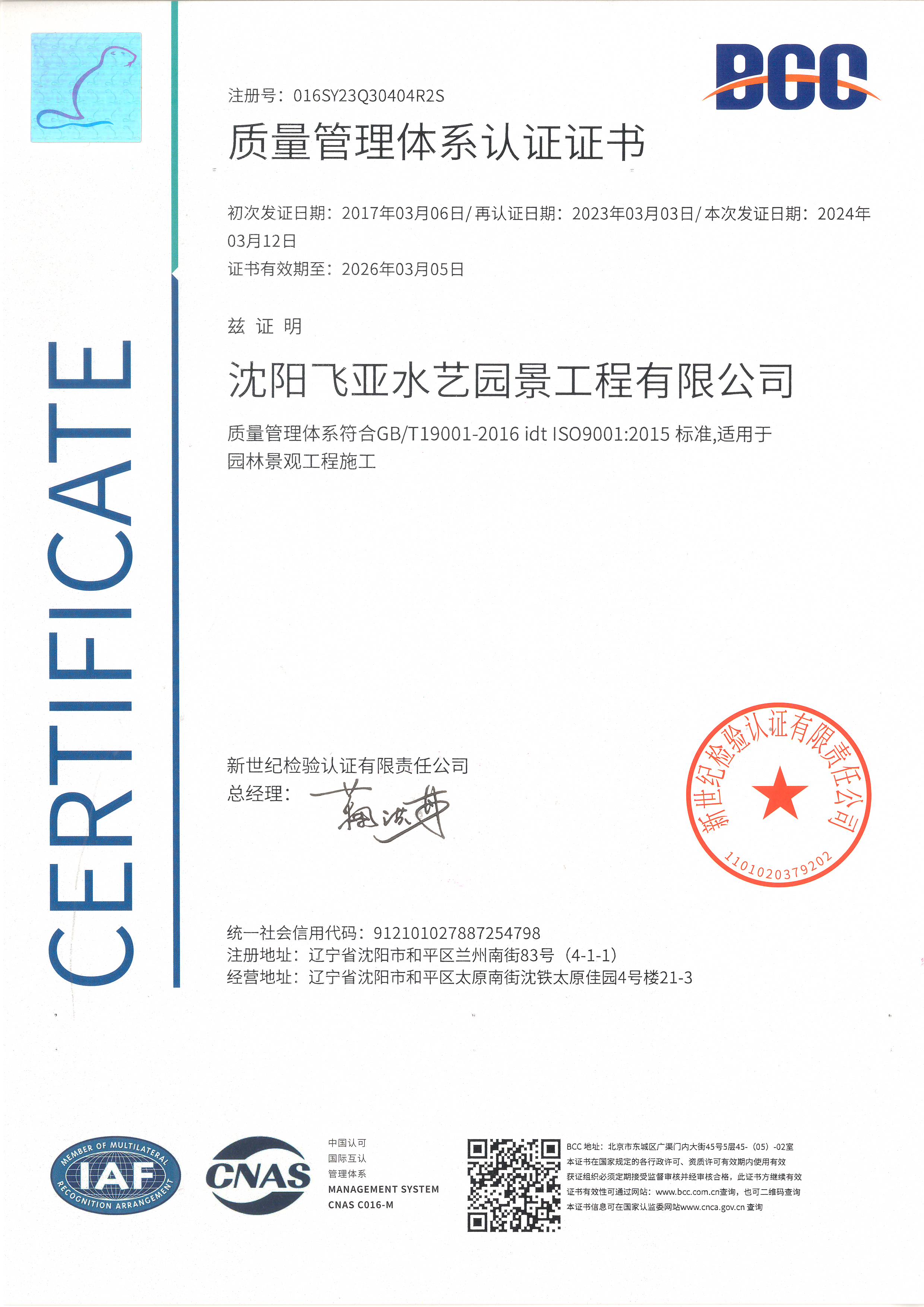 質(zhì)量管理體系證書