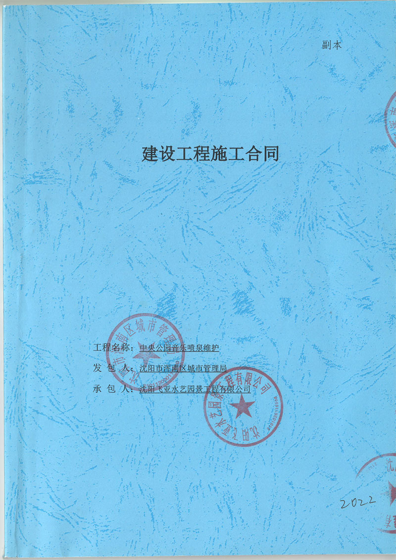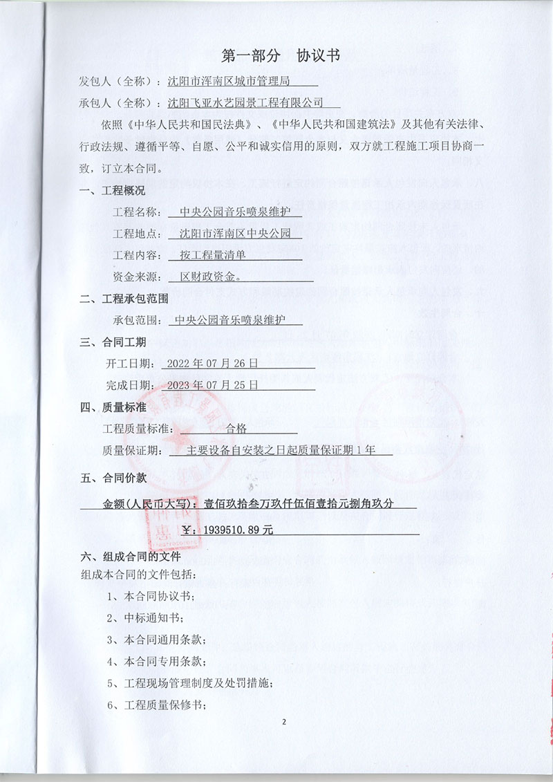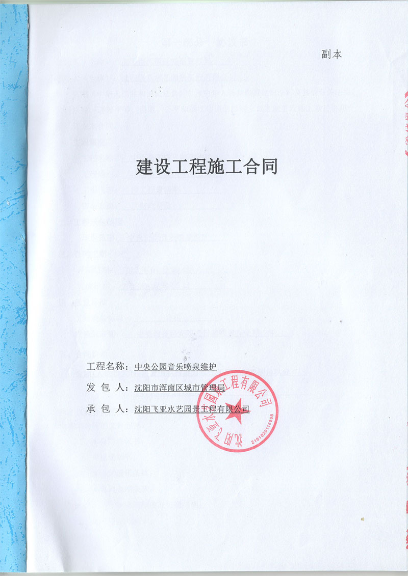 遼寧沈陽(yáng)中央公園音樂(lè)噴泉養(yǎng)護(hù)合同